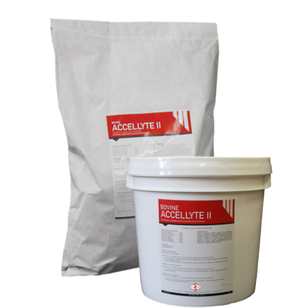 Bovine Accellyte II comes in a 10 pound pail or a 25 pound bag. It can be dry-mixed into a total mixed ration or added to a stock tank for individual water feedings. It can be fed continuously or targeted to times of high temperatures and humidity with a one or two day lead time.
